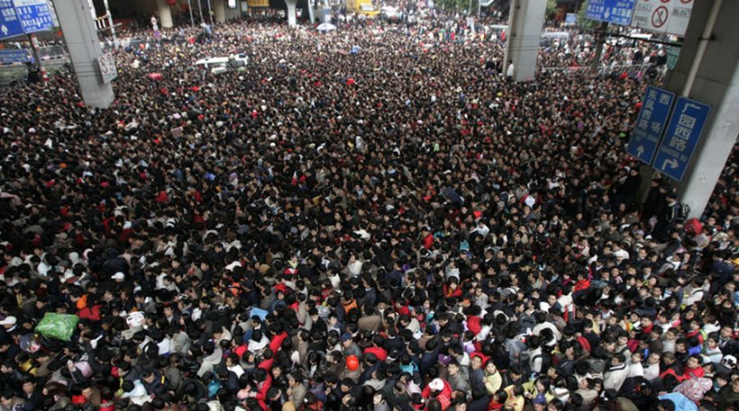 στην Κίνα όπου 100.000 άνθρωποι στριμώχτηκαν μέχρι να μπουν σε συρμούς για να επιστρέψουν σπίτια τους μετά τον εορτασμό της κινεζικής Πρωτοχρονιάς.