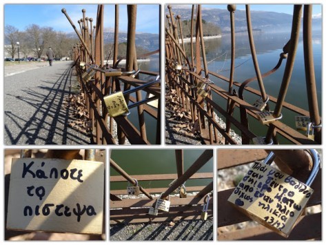 μιας και η μανία των «λουκέτων της αγάπης», που εξαπλώθηκε στις μεγαλύτερες ευρωπαϊκές πόλεις έφτασε και στα κάγκελα της λίμνης Παμβώτιδας. Έτσι λοιπόν τα περίφημα αυτά λουκέτα, μπορεί να τα δει κάποιος απολαμβάνοντας τη βόλτα του στην παραλίμνιο περιοχή, στο ύψος που βρίσκεται το πάρκο Κατσάρη. Σε αυτά μπορείς να διαβάσεις τα μηνύματα αγάπης που αφήνει κάποιος για το αγαπημένο του πρόσωπο.