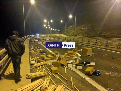 Με εμπορεύματα γέμισε η Εγνατία Οδός στο ύψος της Καβάλας μετά από ένα πρωτόγνωρο ατύχημα που είχε νταλίκα μεταφορικής εταιρίας δημοσίας χρήσεως λίγο πριν τα μεσάνυχτα της Τρίτης .