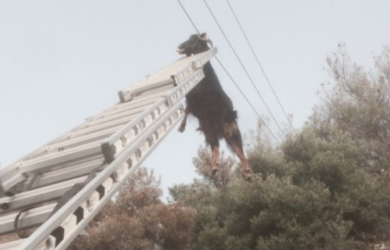 Κάτω από αδιευκρίνιστες συνθήκες, προφανώς αφού ανέβηκε σε δένδρο για να βοσκήσει βρέθηκε να κρέμεται πιασμένη από τα κέρατα, από καλώδιο της ΔΕΗ το οποίο λόγω της κλίσης του εδάφους ήταν πιο χαμηλά.