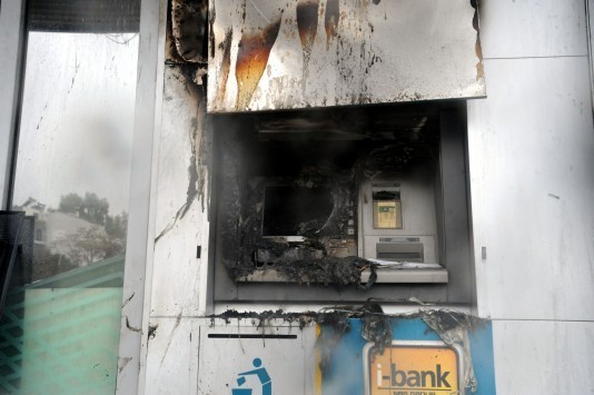 Άγνωστοι περιέλουσαν με εύφλεκτο υγρό ΑΤΜ της Εθνικής Τράπεζας στην οδό Δωδώνης 121, στις 3:00.