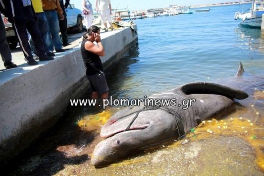 Το ψάρι βγήκε στη ράμπα της μαρίνας για να τεμαχιστεί...