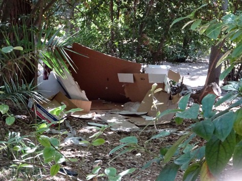 Λίγα μόλις μέτρα από την Βουλή, το Προεδρικό αλλά και το Μέγαρο Μαξίμου, ένας άστεγος βρίσκει προσωρινό κατάλυμα στον Εθνικό Κήπο, με δύο χαρτόκουτα που ακουμπούν στα δέντρα να υποκαθιστούν ένα κρεβάτι και στέγη... τον Αττικό ουρανό.