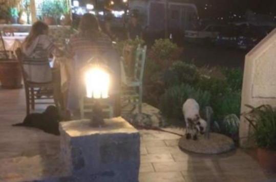 Δεν πίστευε στα μάτια της η νεαρή Βρετανίδα που ανέβασε την συγκεκριμένη φωτογραφία σε μέσο κοινωνικής δικτύωσης. Σύμφωνα με την ίδια η φωτογραφία τραβήχτηκε στον Πλακιά ενω στο σχόλιο της η τουρίστρια γράφει "Αυτό θα μπορούσε να συμβεί μόνο στην Ελλάδα, αυτο το μικρό αρνάκι με λουρί σε εστιατόριο". Η εικόνα ανέβηκε αρχικά στο facebook και άρχισε να κάνει το γύρο του διαδικτύου, με τους χρήστες να σχολιάζουν ποικιλοτρόπως και τον πρωταγωνιστή της υπόθεσης να γίνεται viral. Εκτός από το αρνάκι στα πόδια του ζευγαριού βλέπουμε και ένα σκύλο. Δεν έχει γίνει γνωστό αν ήταν δικός τους, ή αν πρόκειται για αδέσποτο που κάθισε κοντά για ένα μεζέ...
