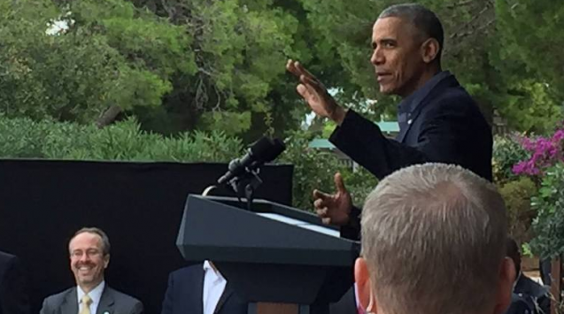 Ήταν η ολιγόλεπτη ομιλία του Μπαράκ Ομπάμα κατά τη διάρκεια μιας μικρής τελετής στον Αστέρα Βουλιαγμένης προς τιμήν των εργαζομένων της αμερικανικής πρεσβείας στην Αθήνα.