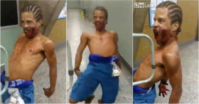 Η αλλοπρόσαλλη συμπεριφορά του αγνώστου βιντεοσκοπήθηκε από μέλος του προσωπικού του νοσοκομείου Miguel Couto Hospital στο Ρίο, με τον τραυματία να δείχνει την ανοιχτή πληγή του στο πρόσωπο.