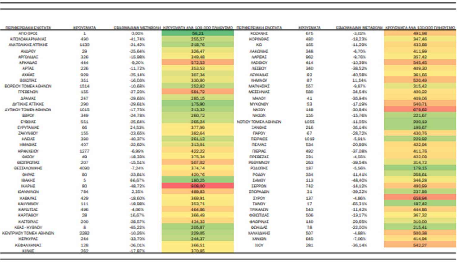 Την εβδομάδα αναφοράς, το ποσοστό θετικότητας ήταν 5,79% σε σύνολο 580.195 εργαστηριακών ελέγχων (RT-PCR/Rapid-Ag) με το μέσο όρο επταημέρου να είναι 82.885 δείγματα (1% εβδομαδιαία μεταβολή).