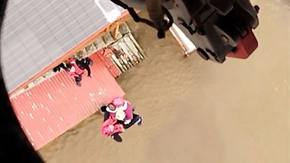 Συγκλονιστική είναι η προσπάθεια για τη διάσωση ενός πατέρας με το παιδί του, με ελικόπτερο Super Puma της Πυροσβεστικής στην Αγία Τριάδα Καρδίτσας, καθώς το σπίτι τους είχε καλυφθεί από νερό.