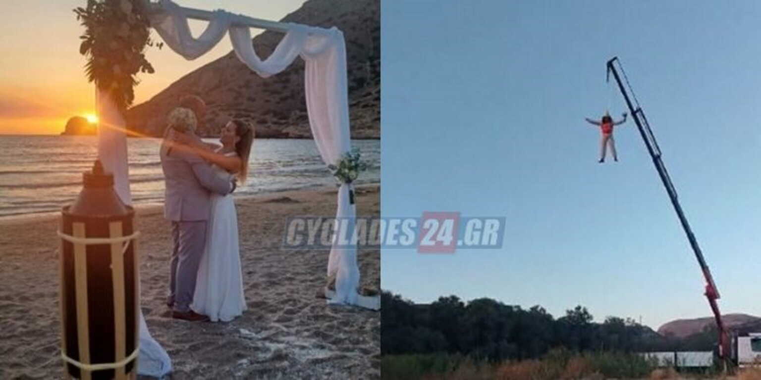 Σύρος: Γαμπρός κρεμάστηκε σε γερανό και «προσγειώθηκε» στον γάμο του