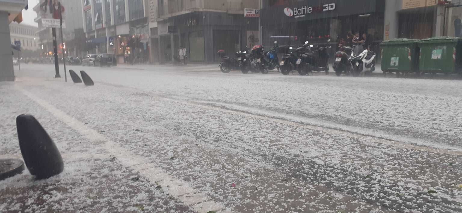 Αρχές καλοκαιριού και στα Γιάννενα ο καιρός θυμίζει Φθινόπωρο. Η σφοδρή χαλαζόπτωση το μεσημέρι κράτησε λίγα λεπτά, που όμως ήταν αρκετά για να αλλάξουν το σκηνικό στην πόλη. Σπίτια, δρόμοι και αυλές ντύθηκαν στα λευκά, με το χαλάζι που είχε μέγεθος φουντουκιού να παίρνει σε ορισμένα σημεία ύψος.
